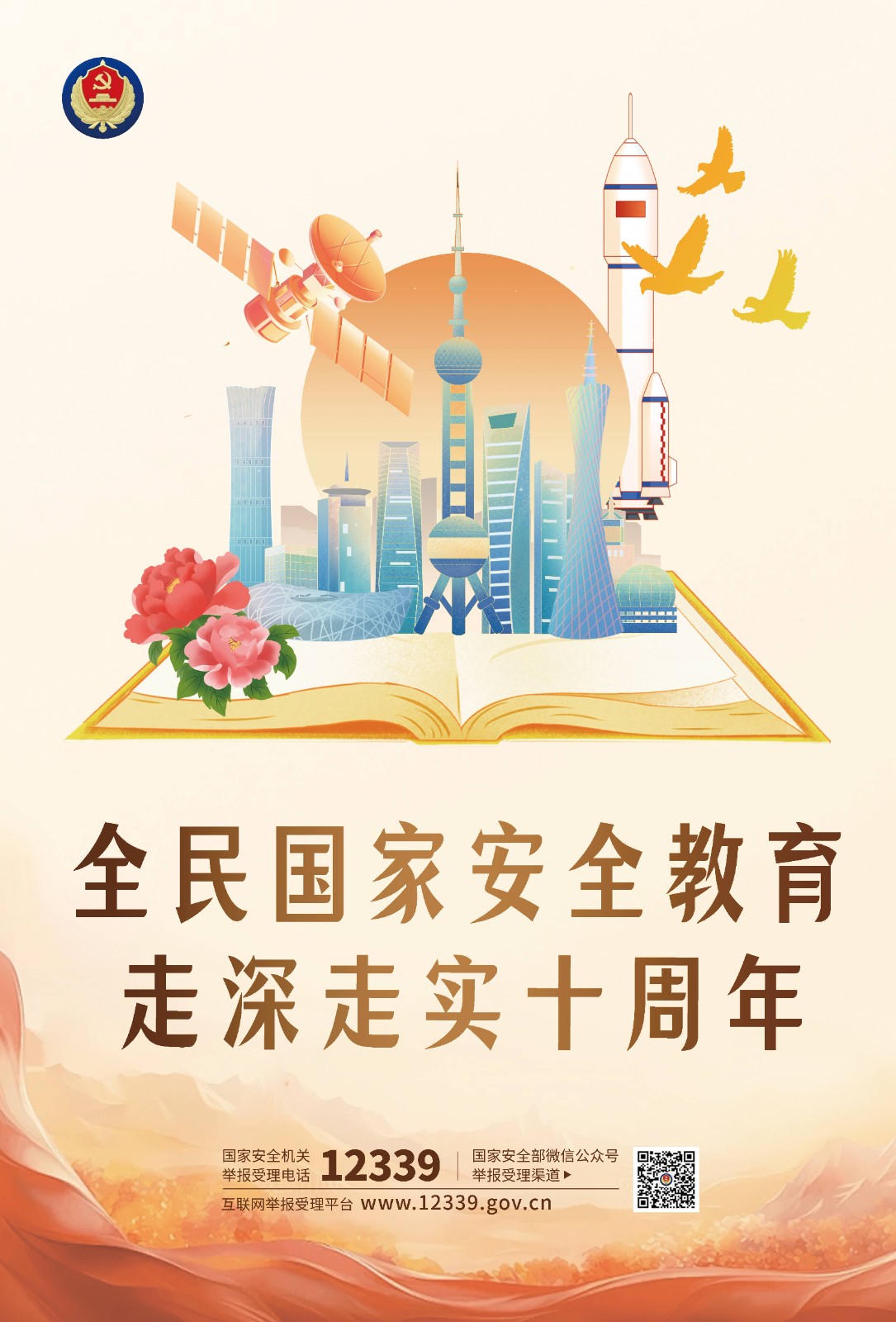 2025年4月15日是第十個全民國家安全教育日,今年的主題是:全民國家安全教育,走深走實(shí)十周年。國安宣工作室發(fā)布系列海報,強(qiáng)調(diào)要堅定不移貫徹總體國家安全觀,推進(jìn)國家安全體系和能力現(xiàn)代化,完善國家安全法治體系,提升國家安全工作法治化水平。